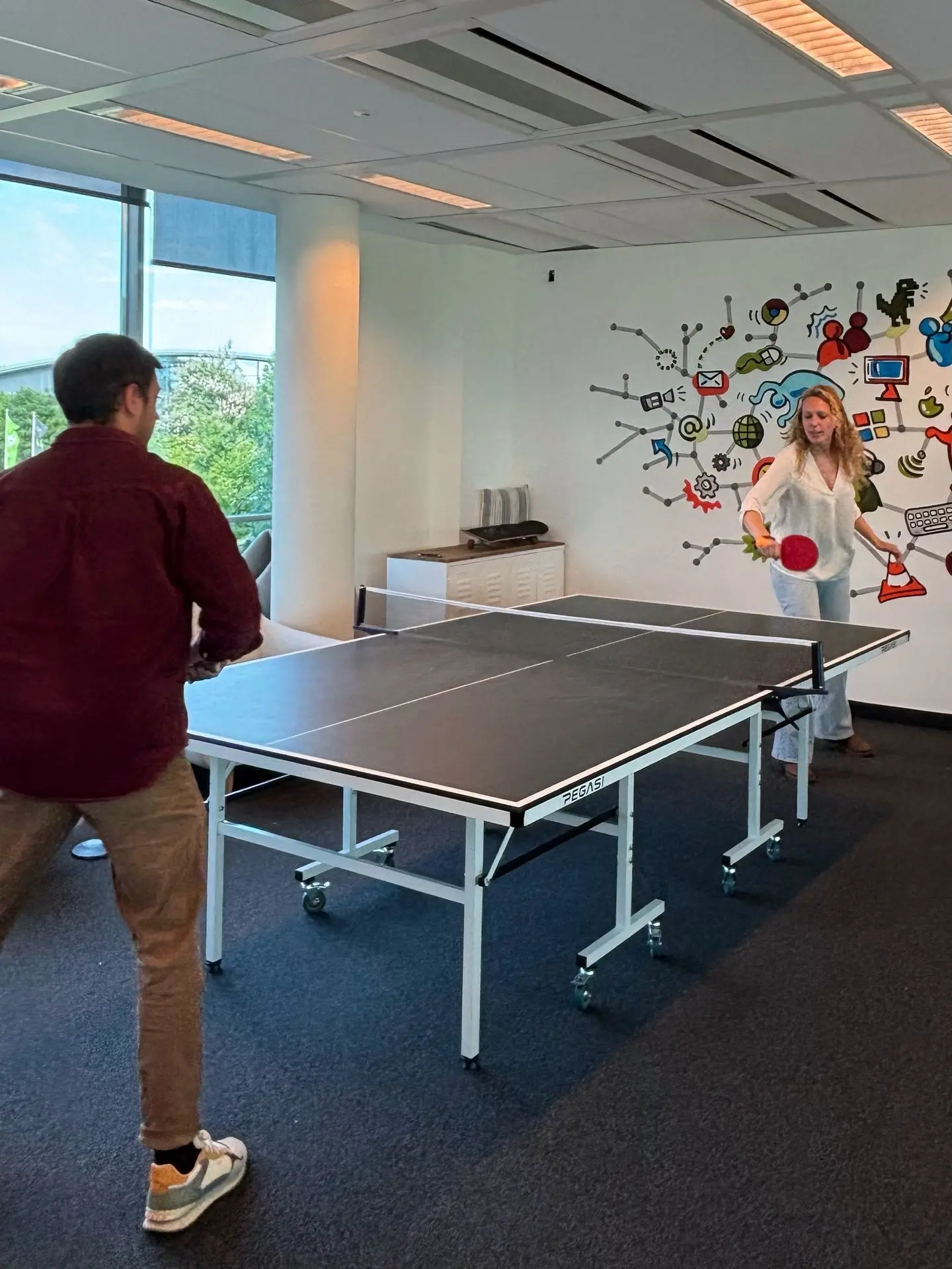 Every month, there's an afterwork to unwind, toast, and sometimes dance a little. Every two months, a sports or fun activity: ping-pong tournament, beach volleyball, yoga, running club... Everyone finds their thing. At noon, we gather around a large table for lunch, often with dishes from the building's restaurant. And sometimes, colleagues become friends.